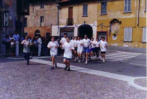 ... ed ecco la fiaccola, scortata dagli indispensabili motociclisti del Moto Club Origgio